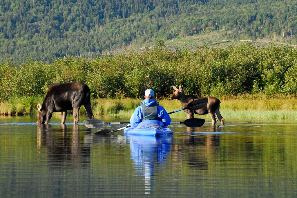 Les enfants échangent un regard tout émerveillé. Avec le guide, nous partageons le même enthousiasme qu’eux. Ouf! mais quelle sensation! C’est toujours très impressionnant de voir dans la nature une bête de cette taille, de la grosseur d’un cheval de selle; le poids de la femelle peut atteindre 350 kg, et celui du mâle, jusqu’à 600 kg. Notre guide nous fait signe de marcher à la queue leu leu. Pourquoi donc? Parce que si l’on se disperse en marchant vers l’animal, celui-ci pourrait nous confondre avec une meute de loups, ses prédateurs naturels, et le cervidé prendra aussitôt la fuite. Chaque pas marque un moment inoubliable dans un paysage magnifique. Nous avons le cœur qui bat la chamade.